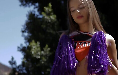 Naughty cheerleader Liza Rowe drops her uniform for a black dick
